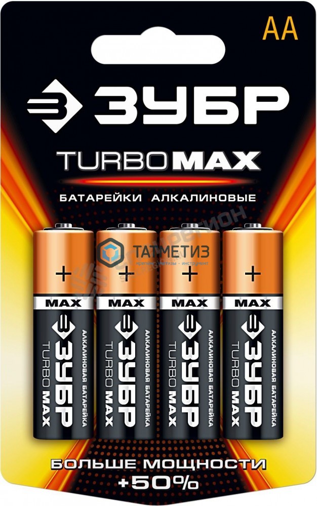 Батарейка Зубр "СУПЕР" щелочная (алкалиновая), тип AA, 1,5В, 4шт на карточке